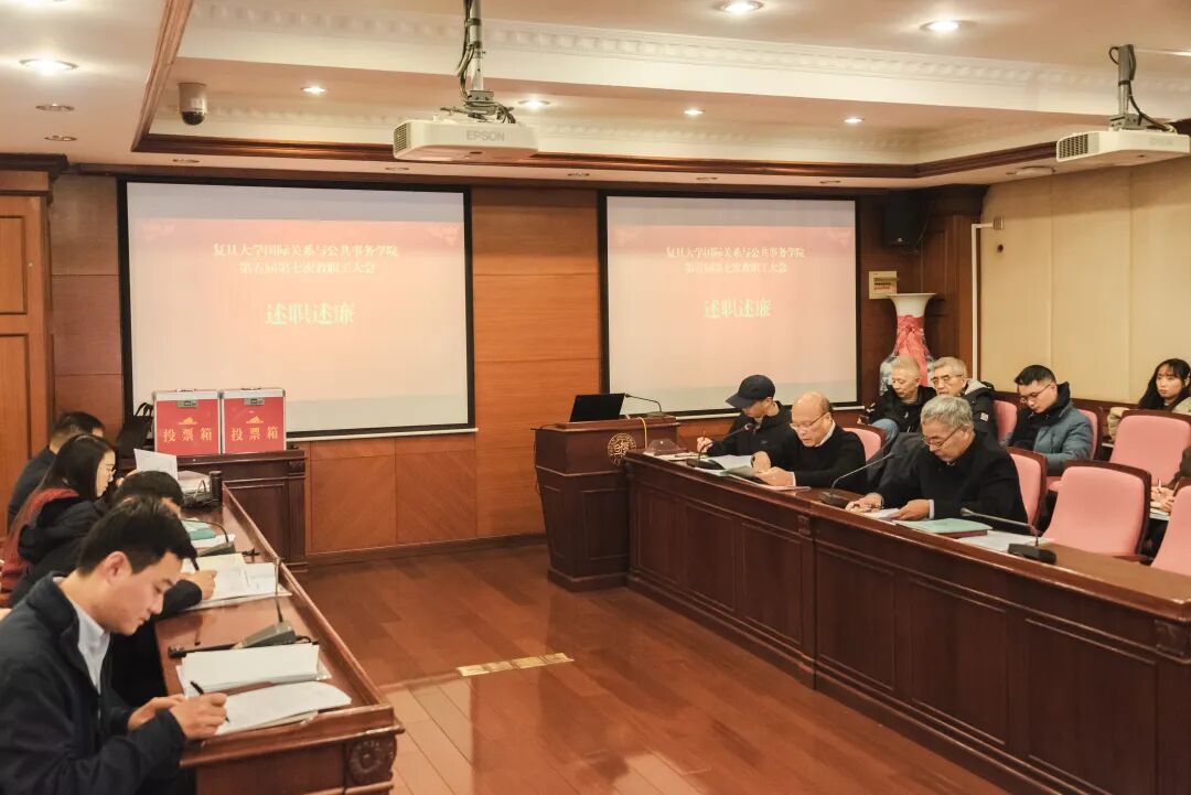 2026年1月6日下午,国际关系与公共事务学院在文科楼826室举行了五届第七次教职工大会暨2025年述职述廉会议,会议由工会主席陈水生老师主持。