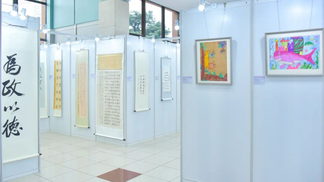 ▲文科楼一楼大堂作品展览区