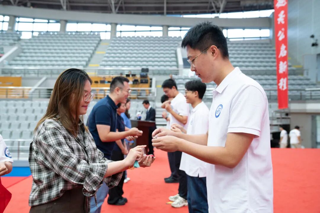 随后,学长学姐为新生代表佩戴院徽并赠送院训纪念印章。这枚院徽、这方印章,不仅是身份的象征,更是精神的传递、责任的托付,激励着新一代国务人不忘初心、砥砺前行。