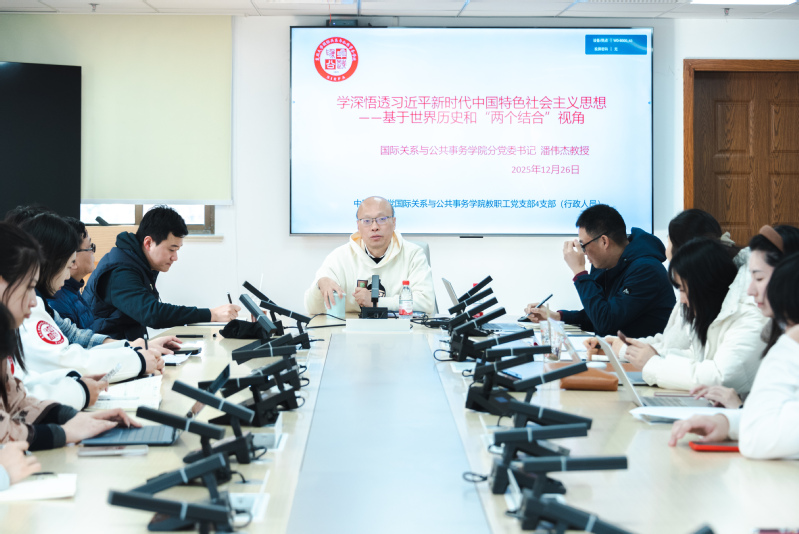 12月26日下午,国务学院教职工第四党支部于文科楼434室召开支部会议,邀请学院分党委书记潘伟杰教授以“学深悟透习近平新时代中国特色社会主义思想——基于世界历史和‘两个结合’视角”为题讲授专题党课。党支部邀请了行政人员中的民主党派和非党员参会。